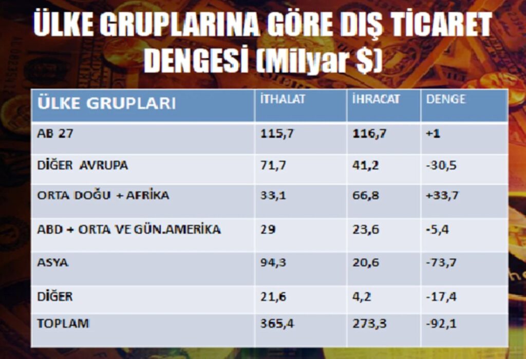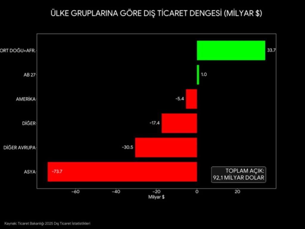 AB ile dengeli bir ticaretimiz var. 1 milyar dolar ticaret fazlası veriyoruz. Ama Orta Doğu ve Afrika ile ticaretimizde 33.7 milyar dolar fazlamız var. Bu veriler sadece 2025 yılına ait veriler. Daha kapsamlı bir çalışma yaptığımızda elimizdeki veriler şunu daha da net gösterecek.