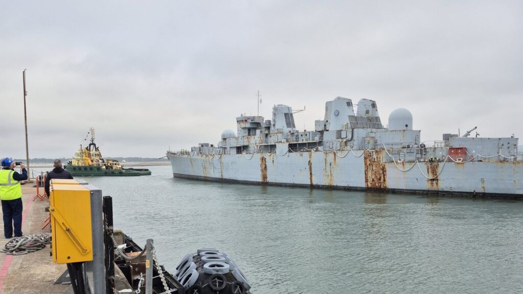 HMS Bristol, Portsmouth limanından çekildi ve şu anda Türkiye’ye doğru yola çıktı. Burada parçalara ayrılacak ve parçaları geri dönüştürülecek.