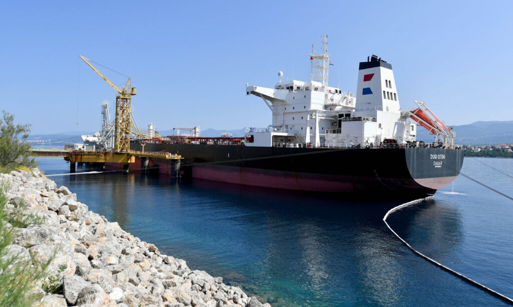 Omisalj terminalindeki JANAF tesisinde tanker Dugi Otok’tan ham petrol boşaltılıyor. Fotoğraf: Damir Skomrlj / CROPIX