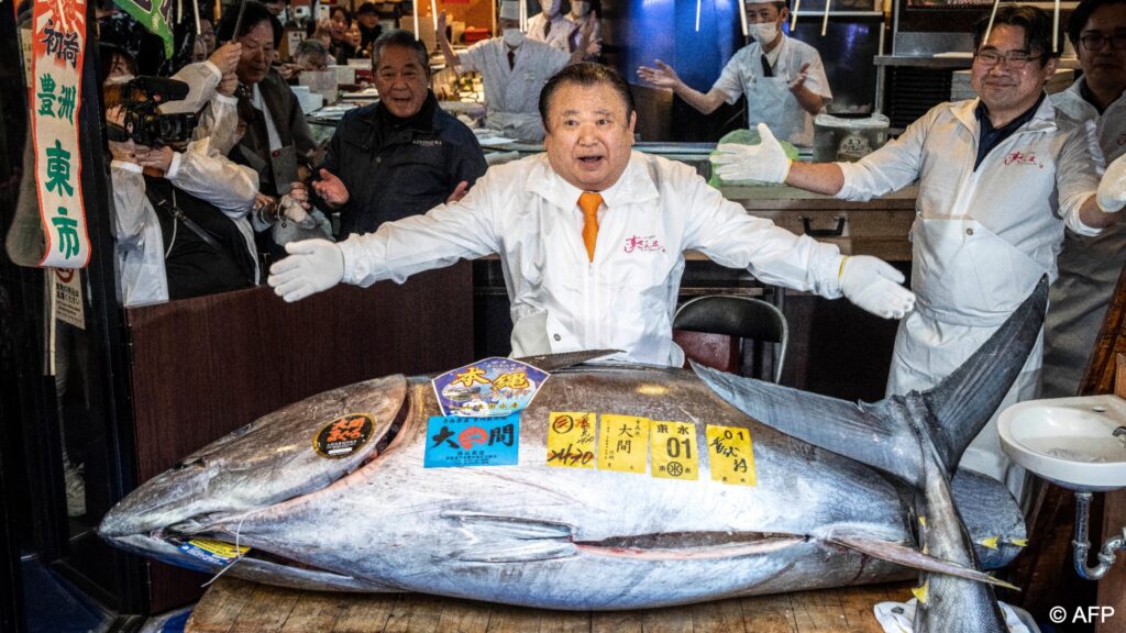 Japonya’nın Kiyomura Corp şirketi, Pazartesi günü Tokyo’daki Toyosu balık pazarında düzenlenen yıllık Yeni Yıl müzayedesinde tek bir mavi yüzgeçli ton balığı için 510 milyon yen (yaklaşık 2,8 milyon Euro veya 3,25 milyon dolar) ödedi. Bu, müzayedede şimdiye kadar ödenen en yüksek fiyat oldu.